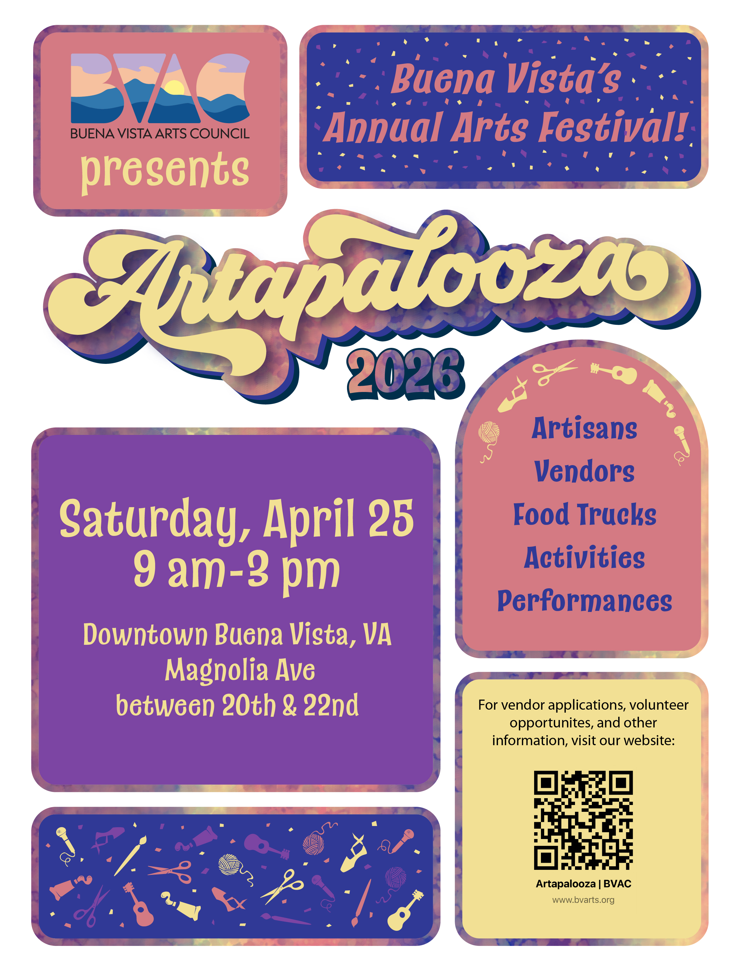 Artapalooza 2026 is right around the corner! Join us for Buena Vista, VA's annual spring arts festival, filled with art activities, performances, vendors, local artisans, food trucks, and more!